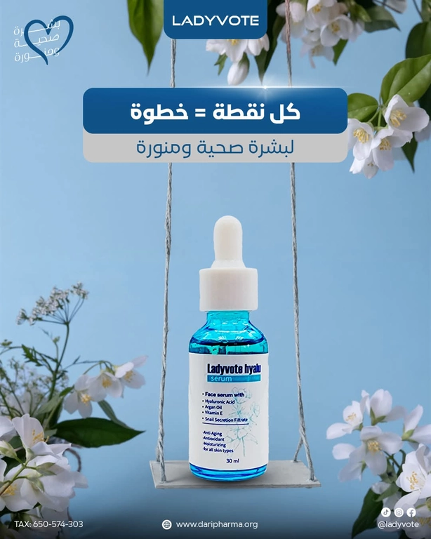 - Ladyvote Hyalu Serum features a unique formula as It contains a high concentration of Hyaluronic Acid, known for its deep hydration, ability to reduce fine lines, tighten the skin, and give a radiant, glowing appearance.